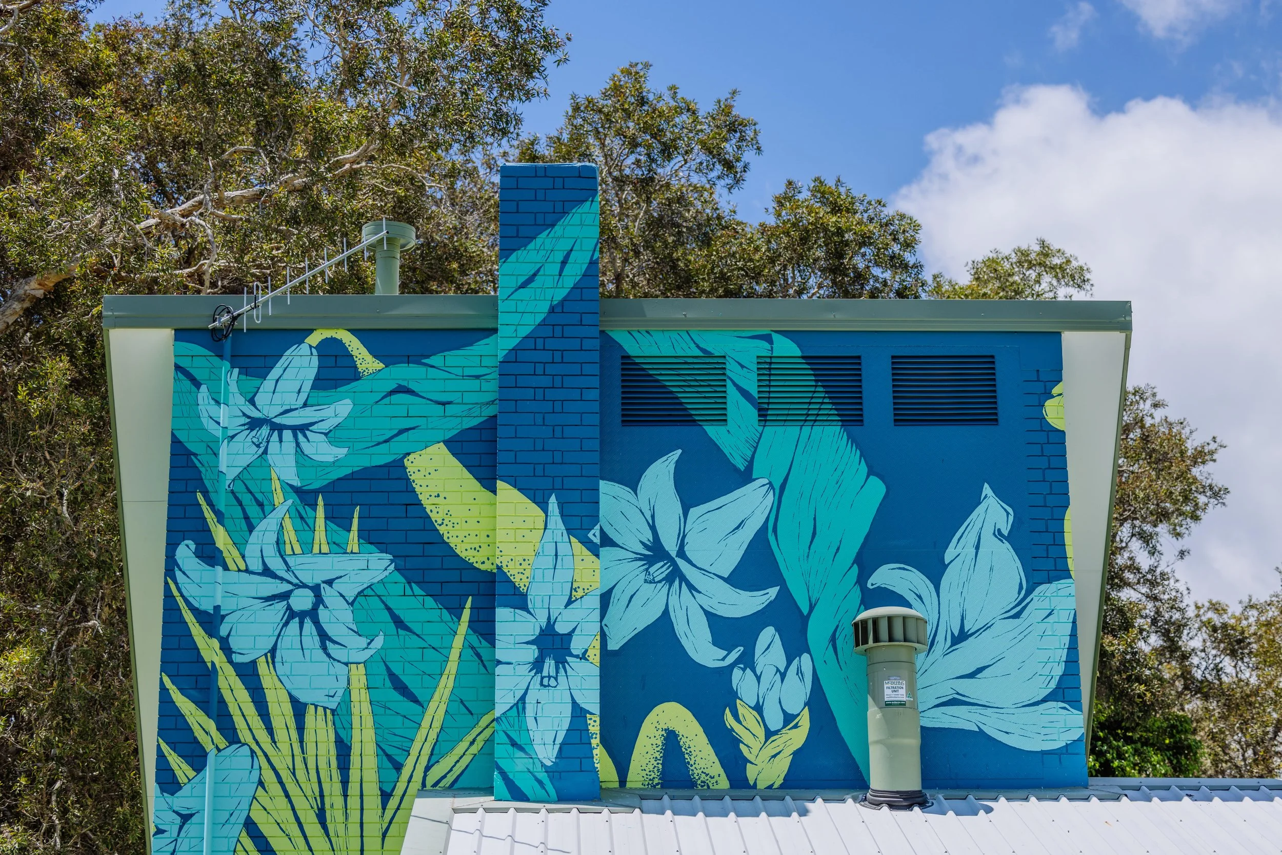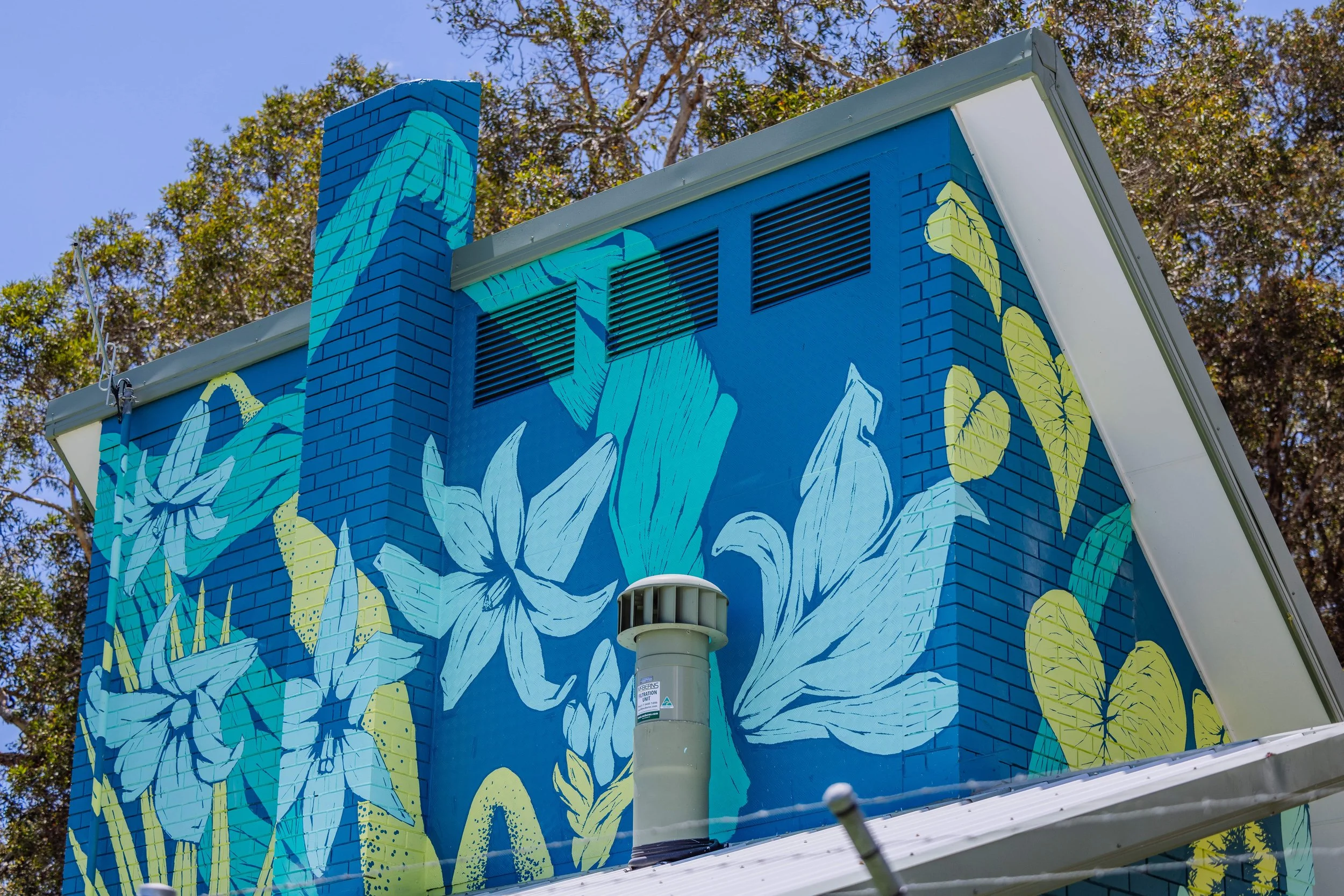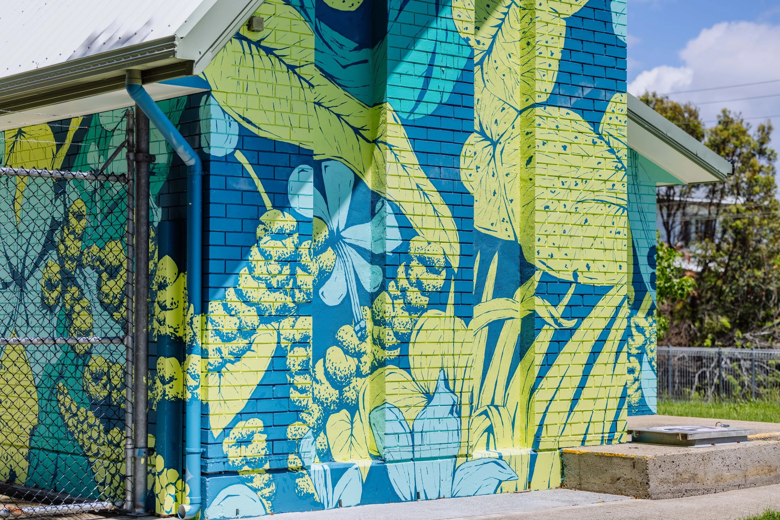 2023Commissioned by the City of Gold Coast as part of the Water Walls urban art project. Curated by Creative Road with installation managed by Usher Group. Photos Courtesy the City of Gold Coast.
