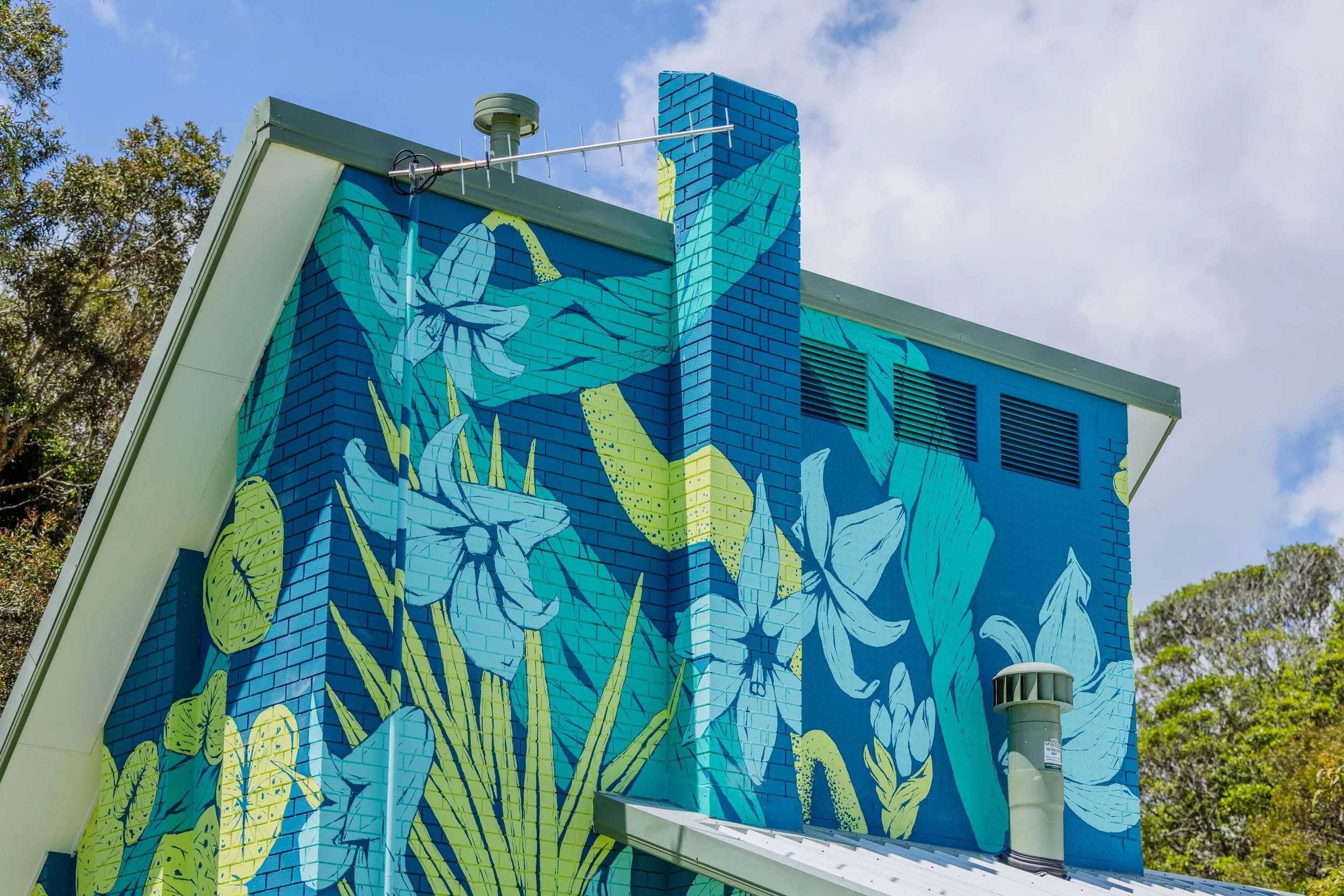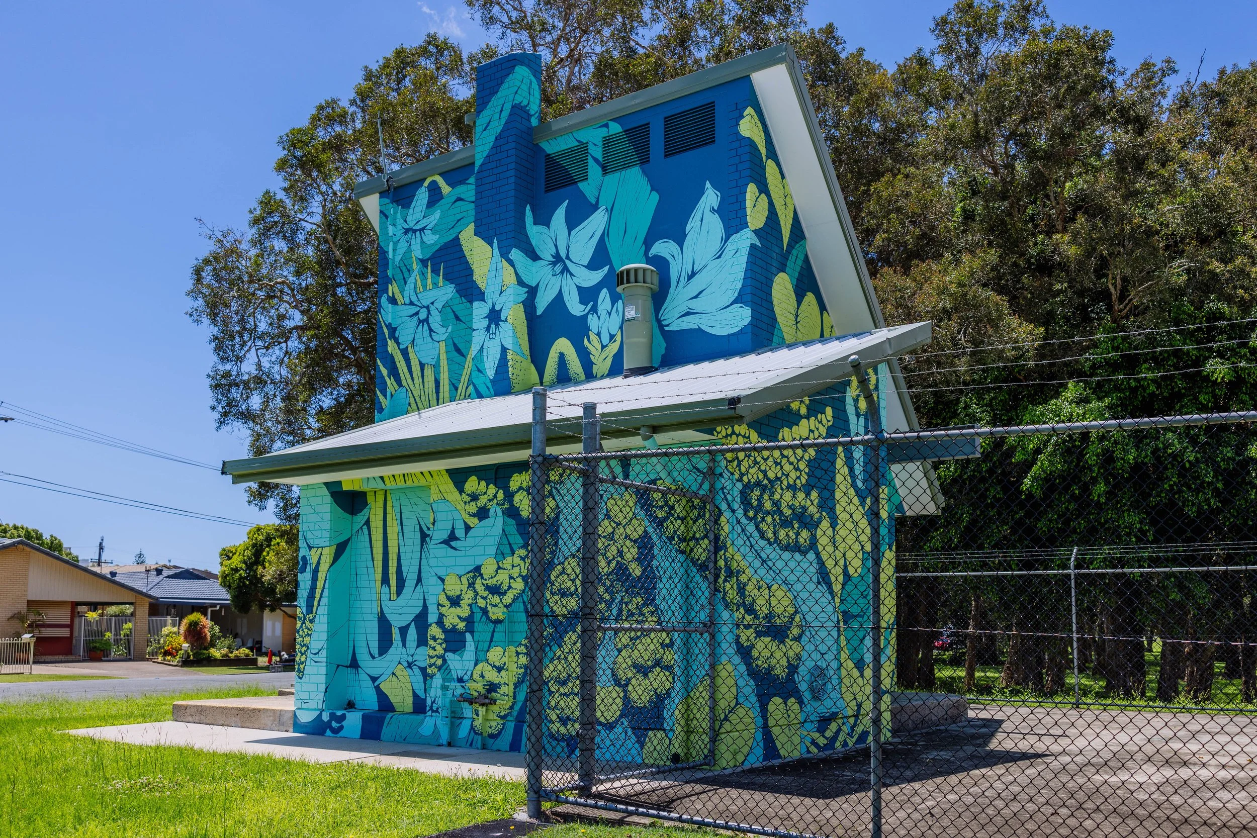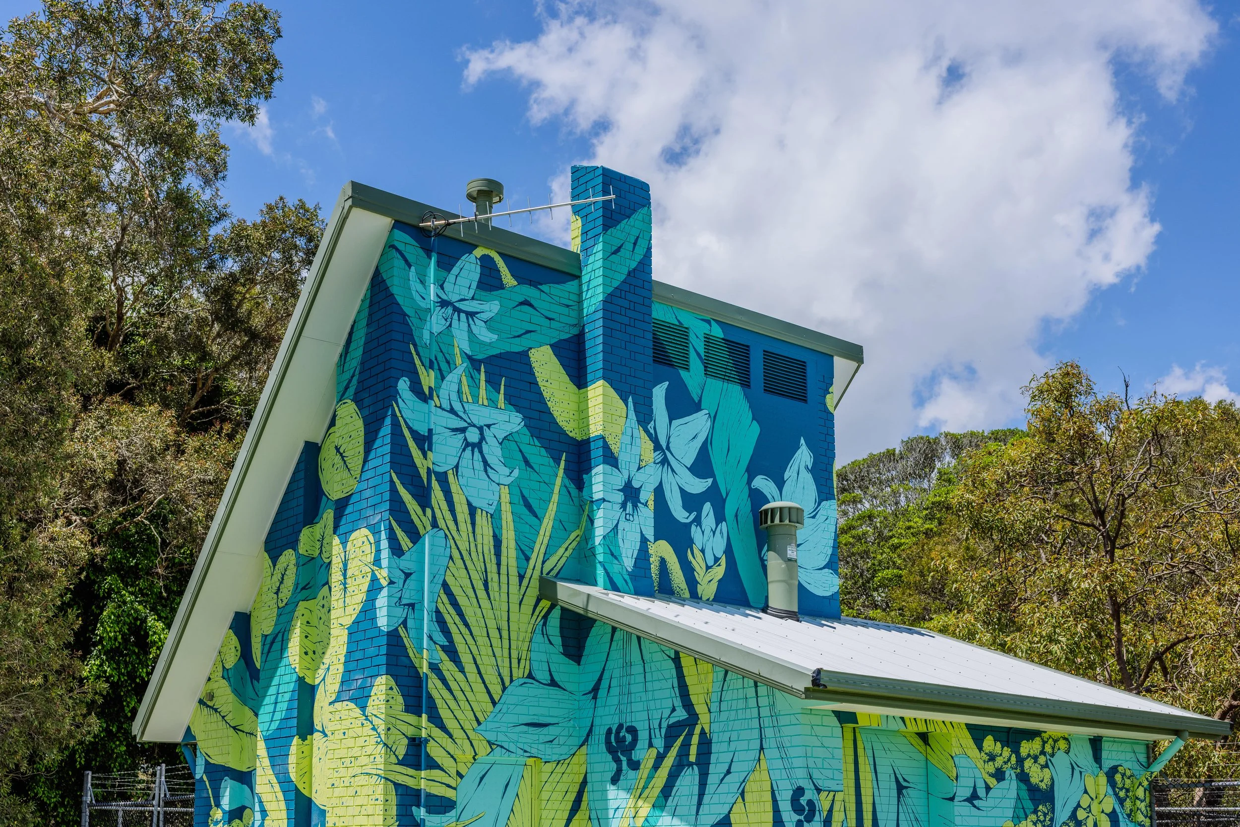 2023Commissioned by the City of Gold Coast as part of the Water Walls urban art project. Curated by Creative Road with installation managed by Usher Group. Photos Courtesy the City of Gold Coast.